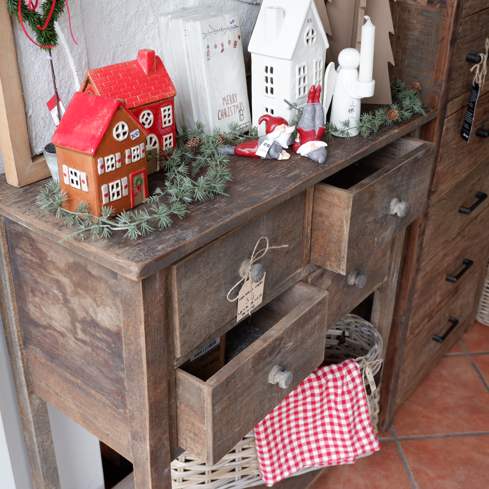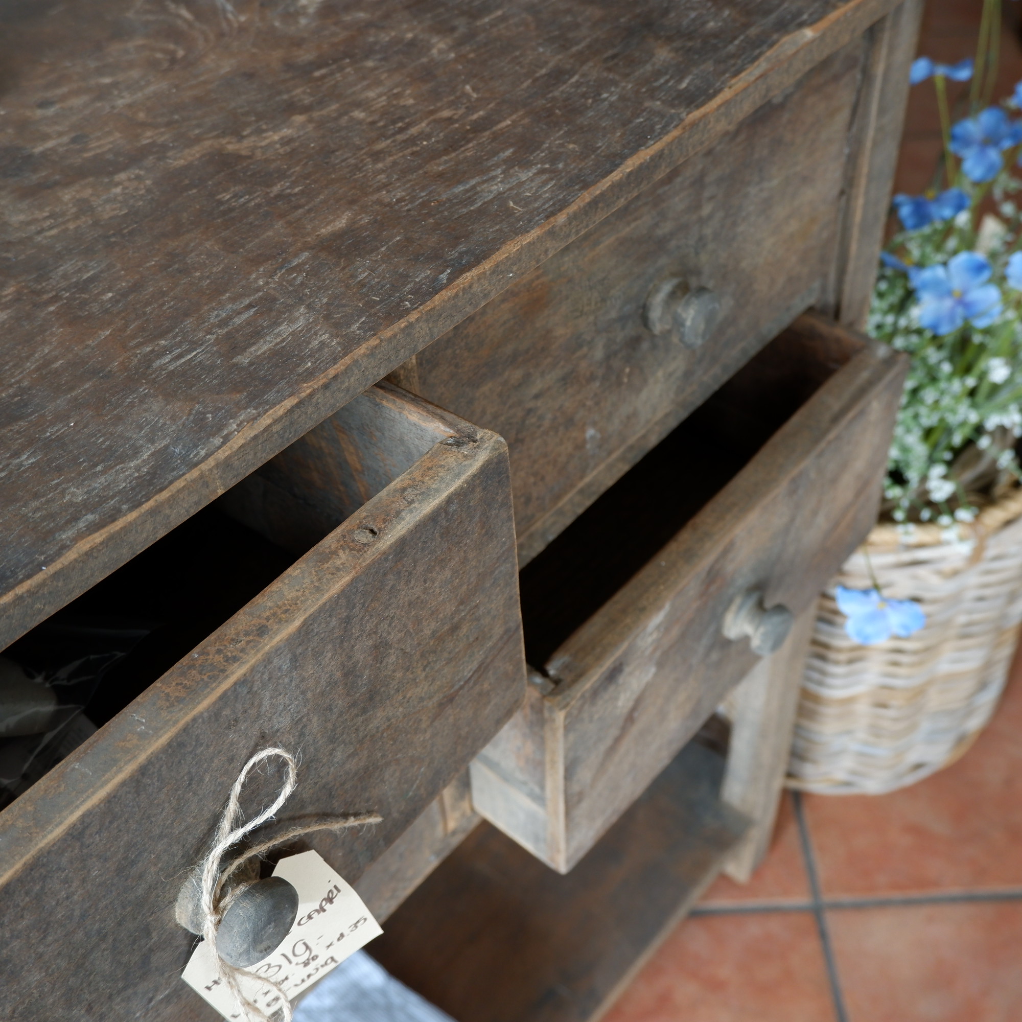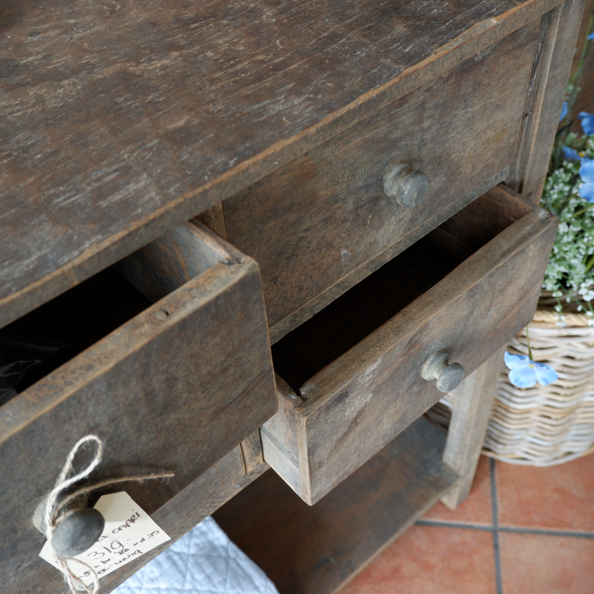 Op de lades 4 ronde houten knoppen