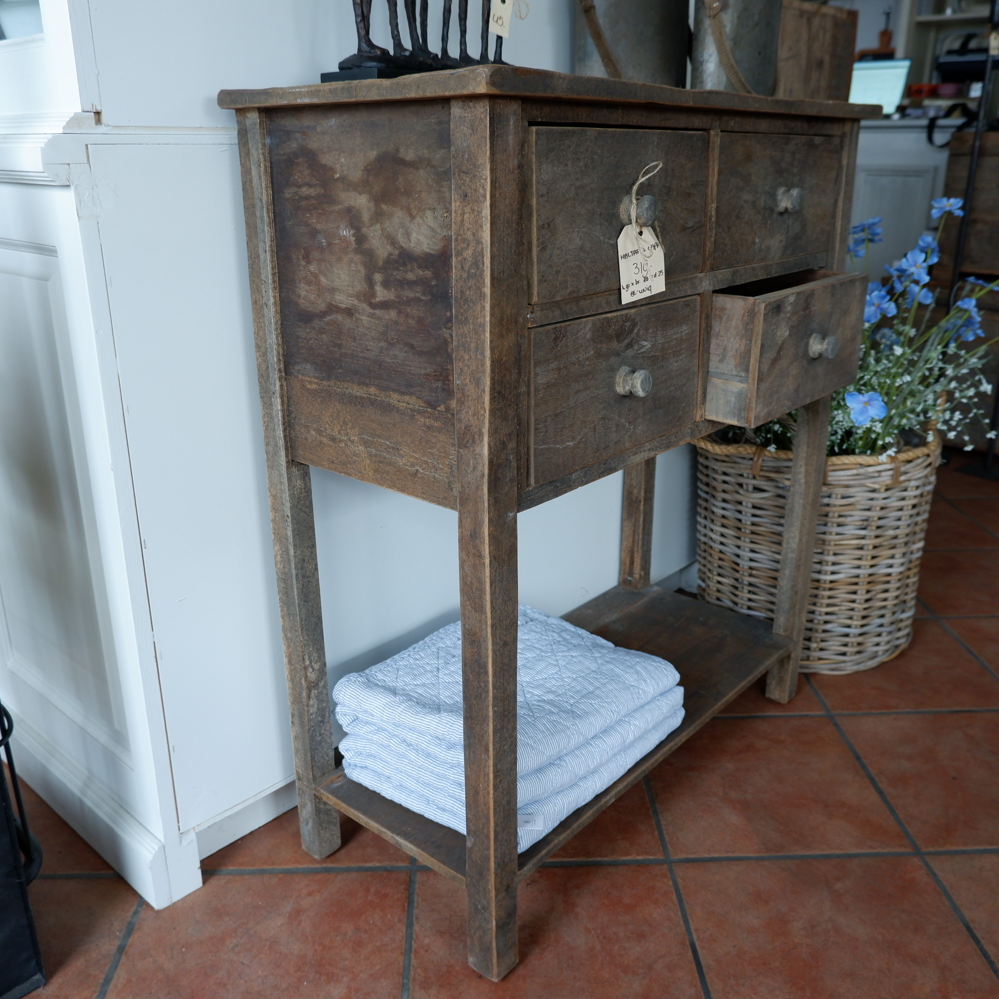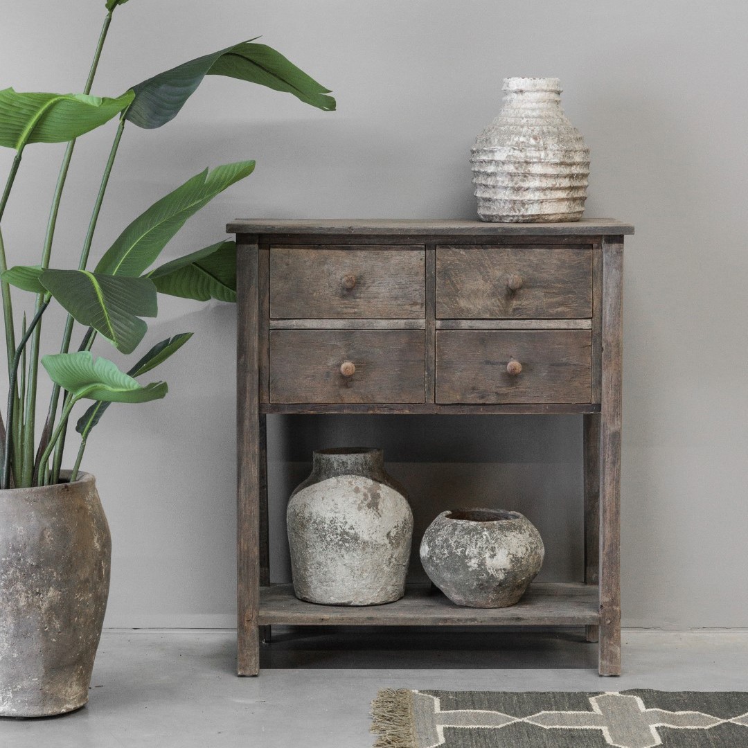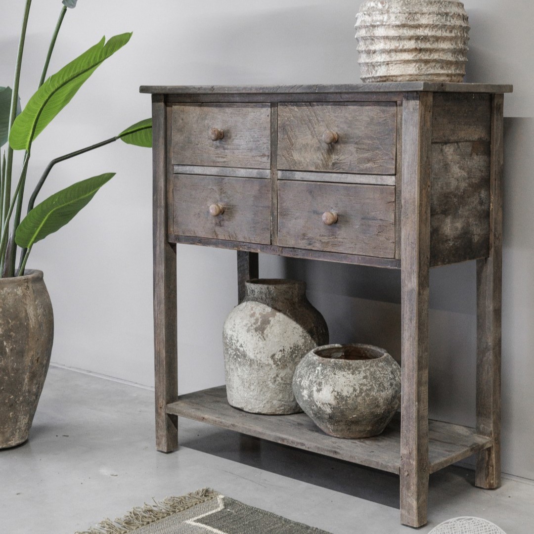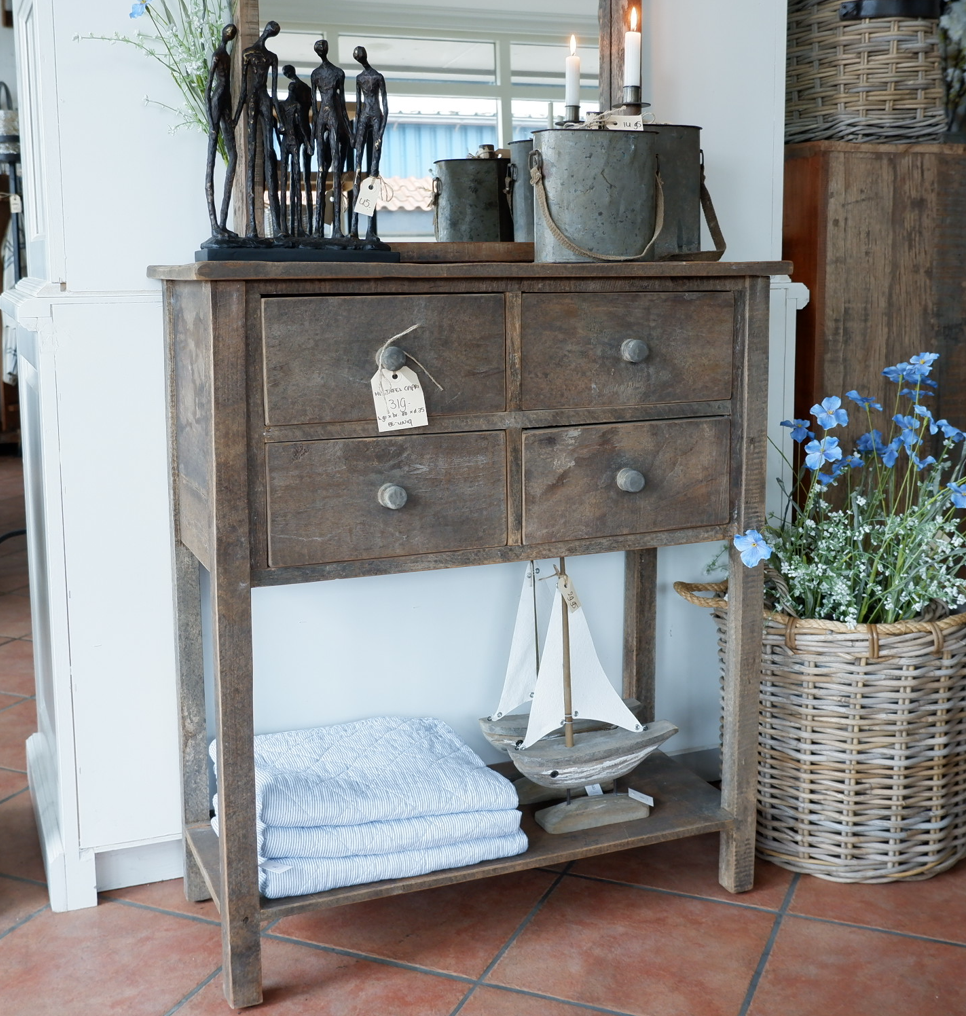 Een stoere wandtafel met 4 lades en plank onderop