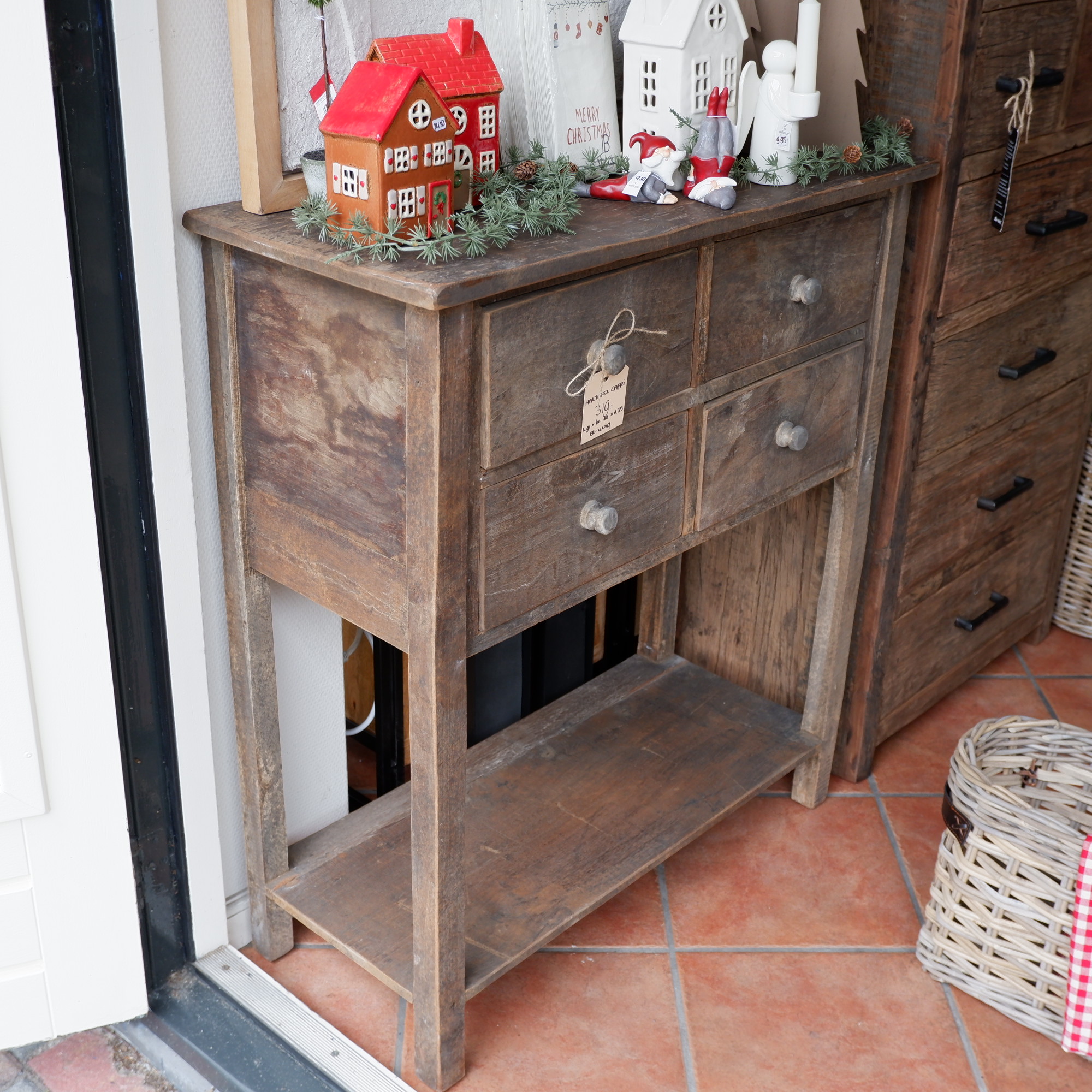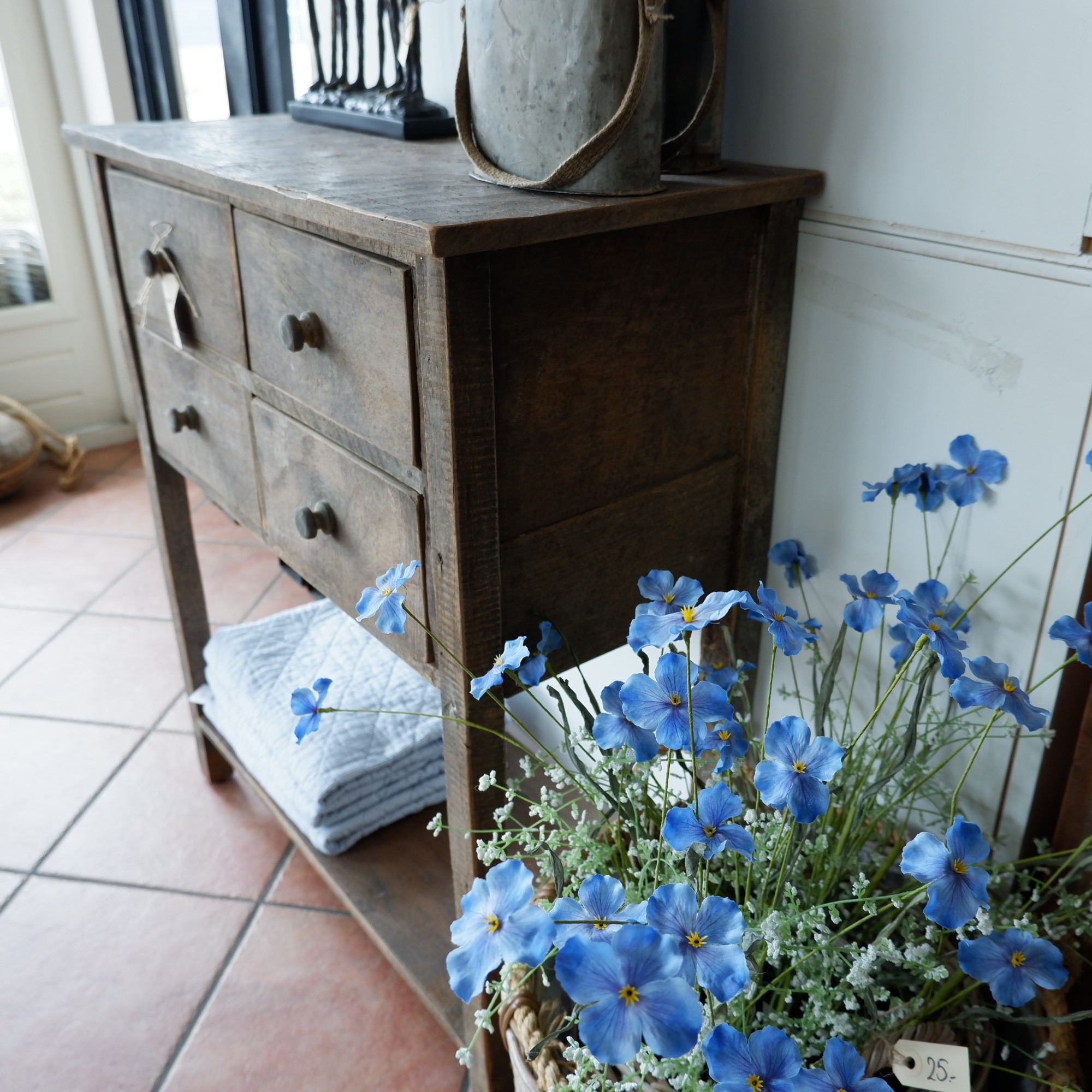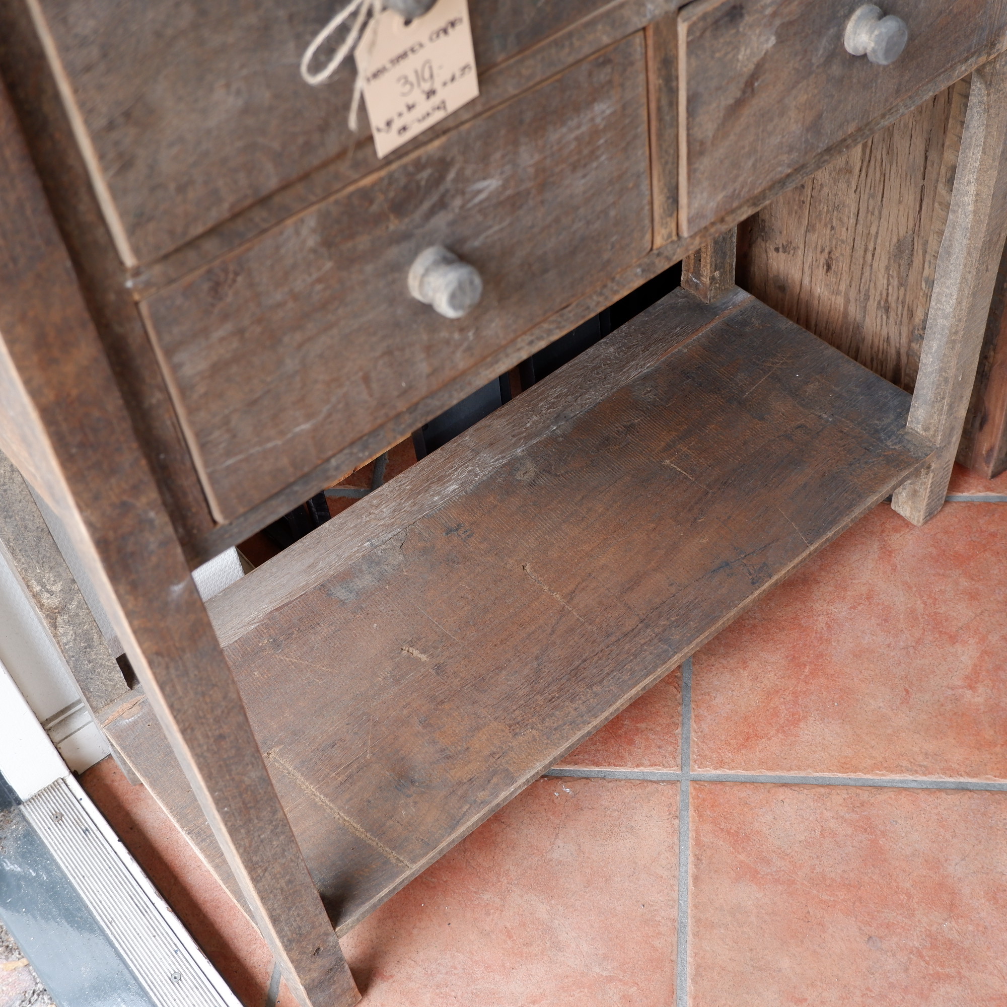 Een stoere wandtafel met 4 lades en plank onderop