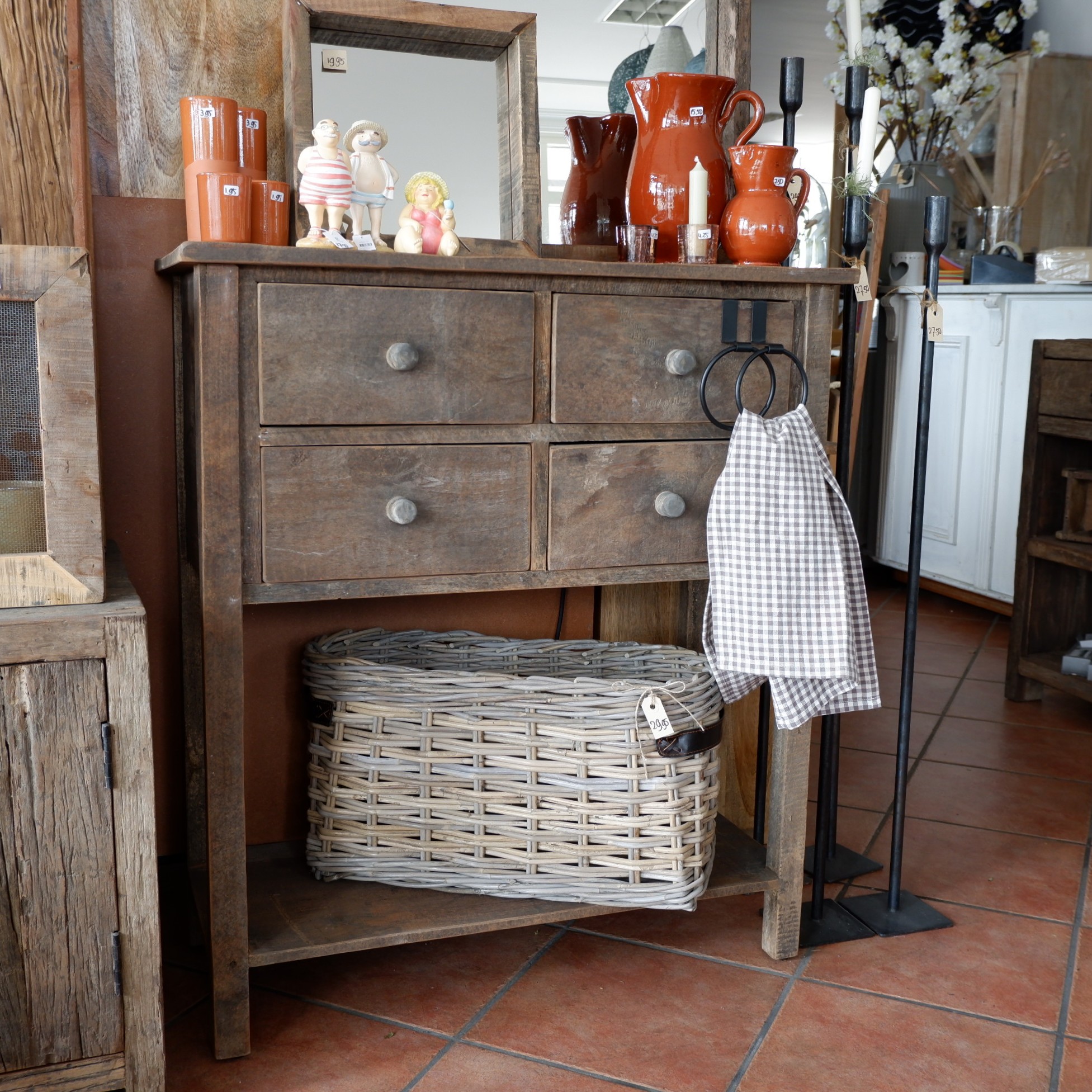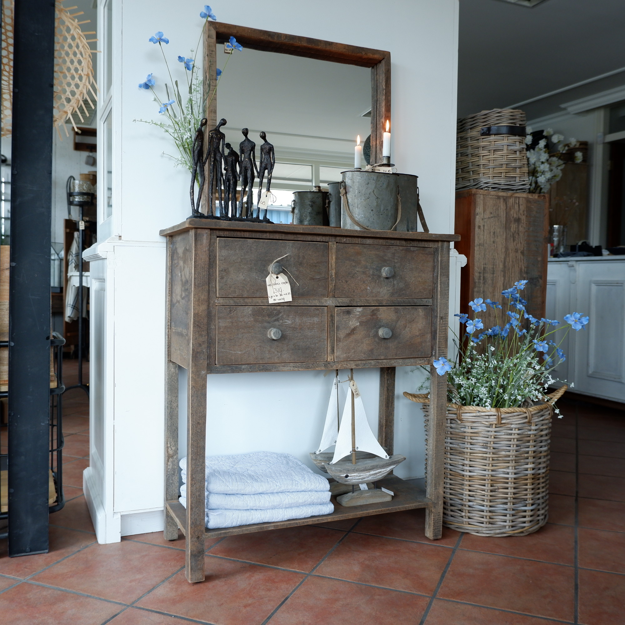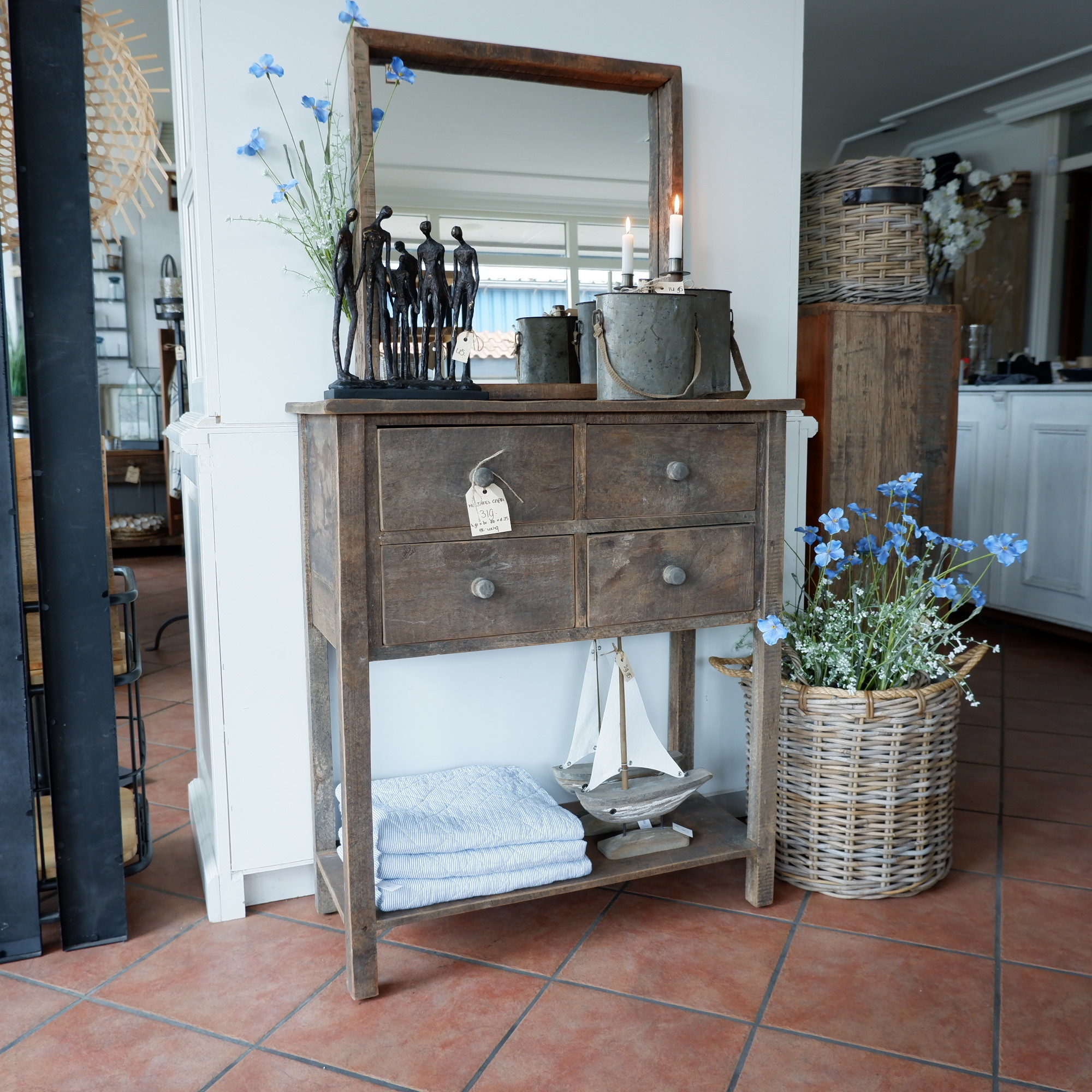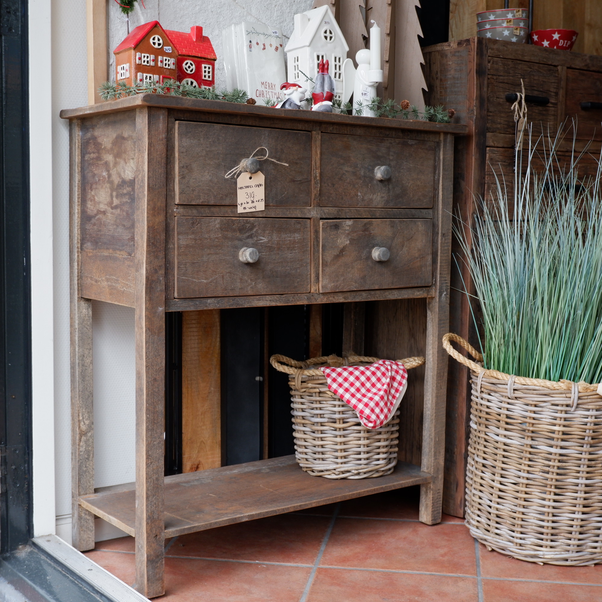 Een stoere wandtafel met 4 lades en plank onderop