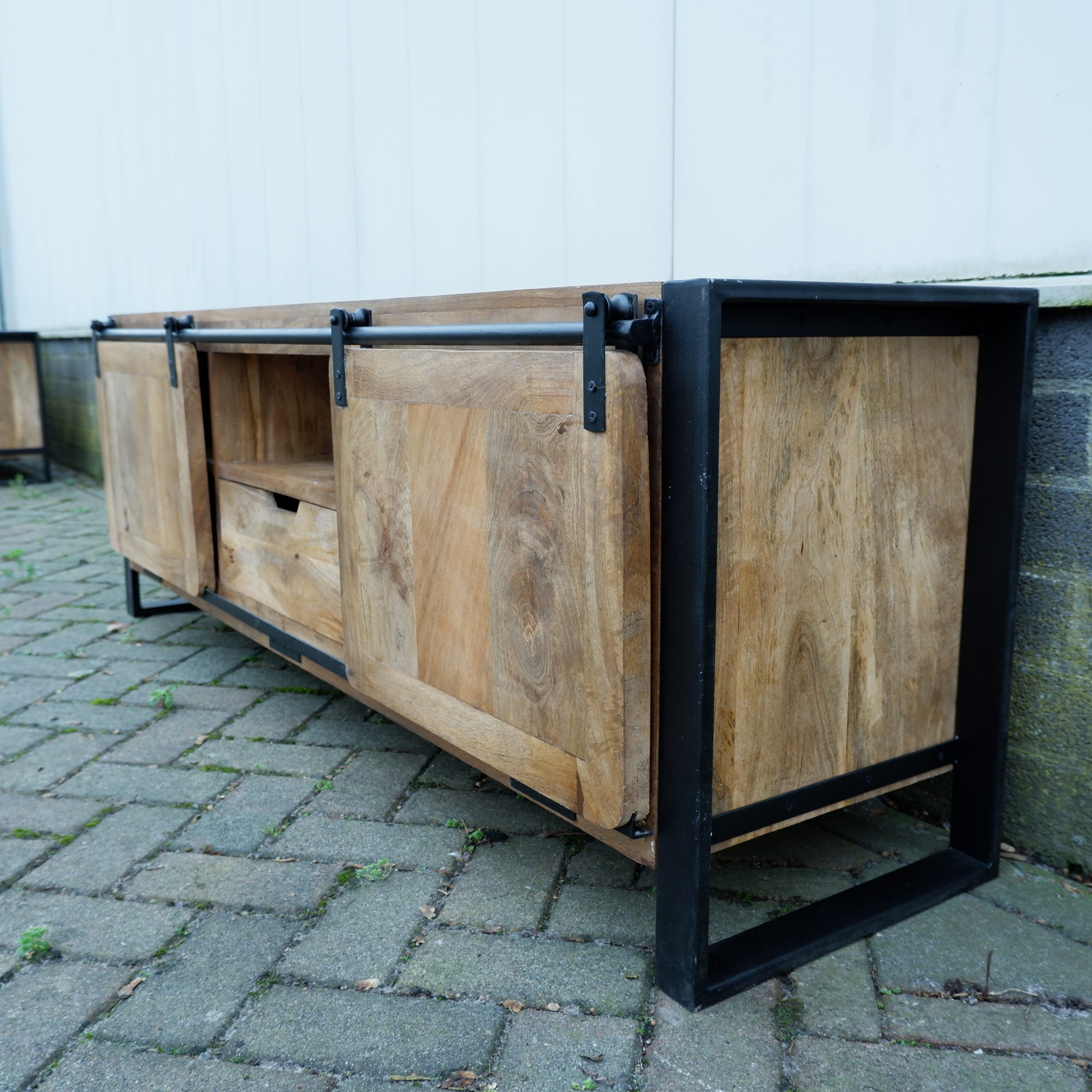 Het zwarte staal aan weerszijde van de kast is 5 cm breed en 1.5 cm dik