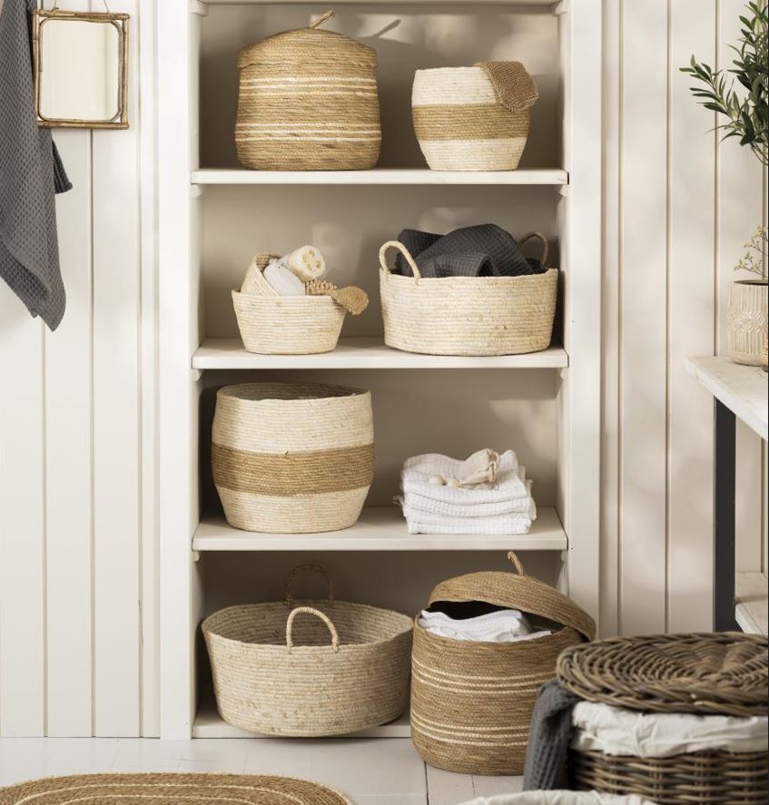 Boven aan de rand van de mand aan 2 zijdes een greep