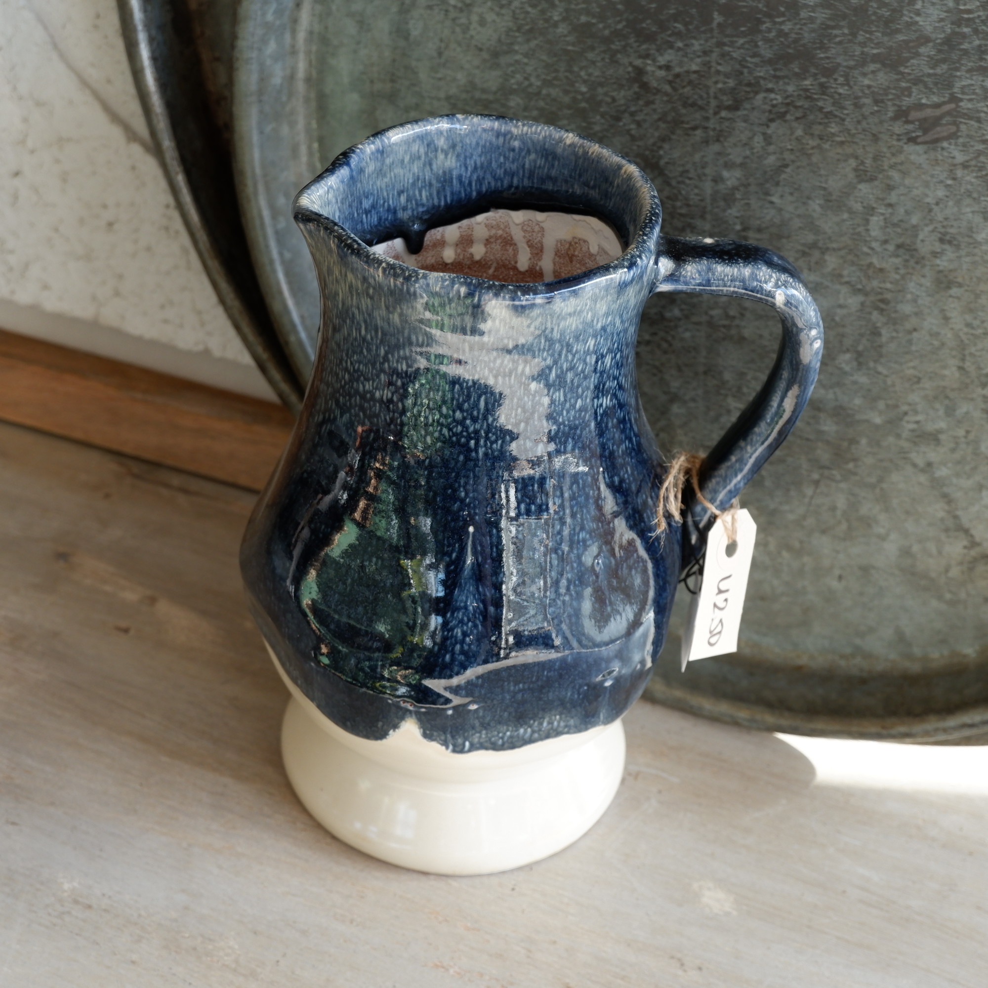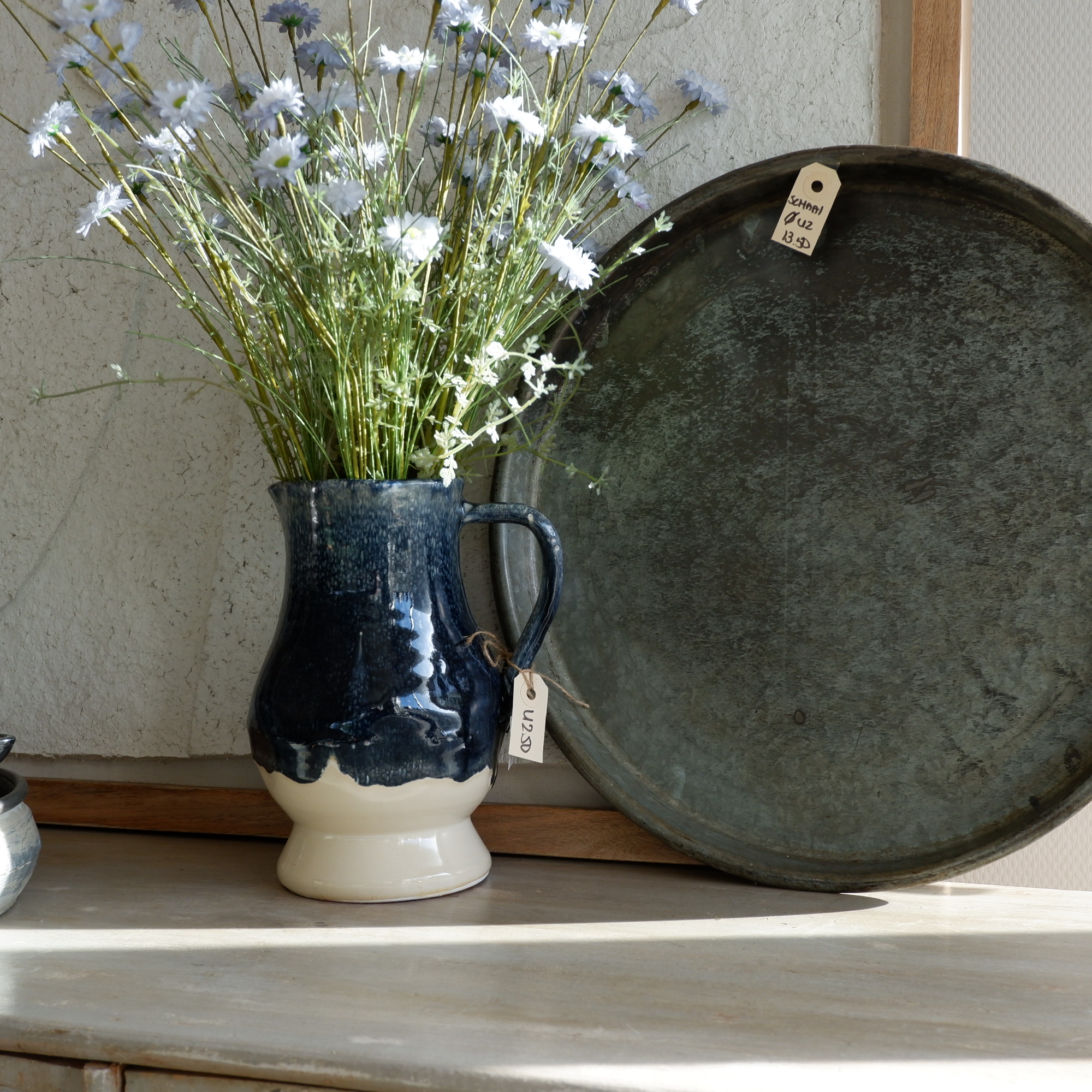 Nadat er op de klei kleurpigment is aangebracht word de kan op hoge temperatuur in de oven gebakken.