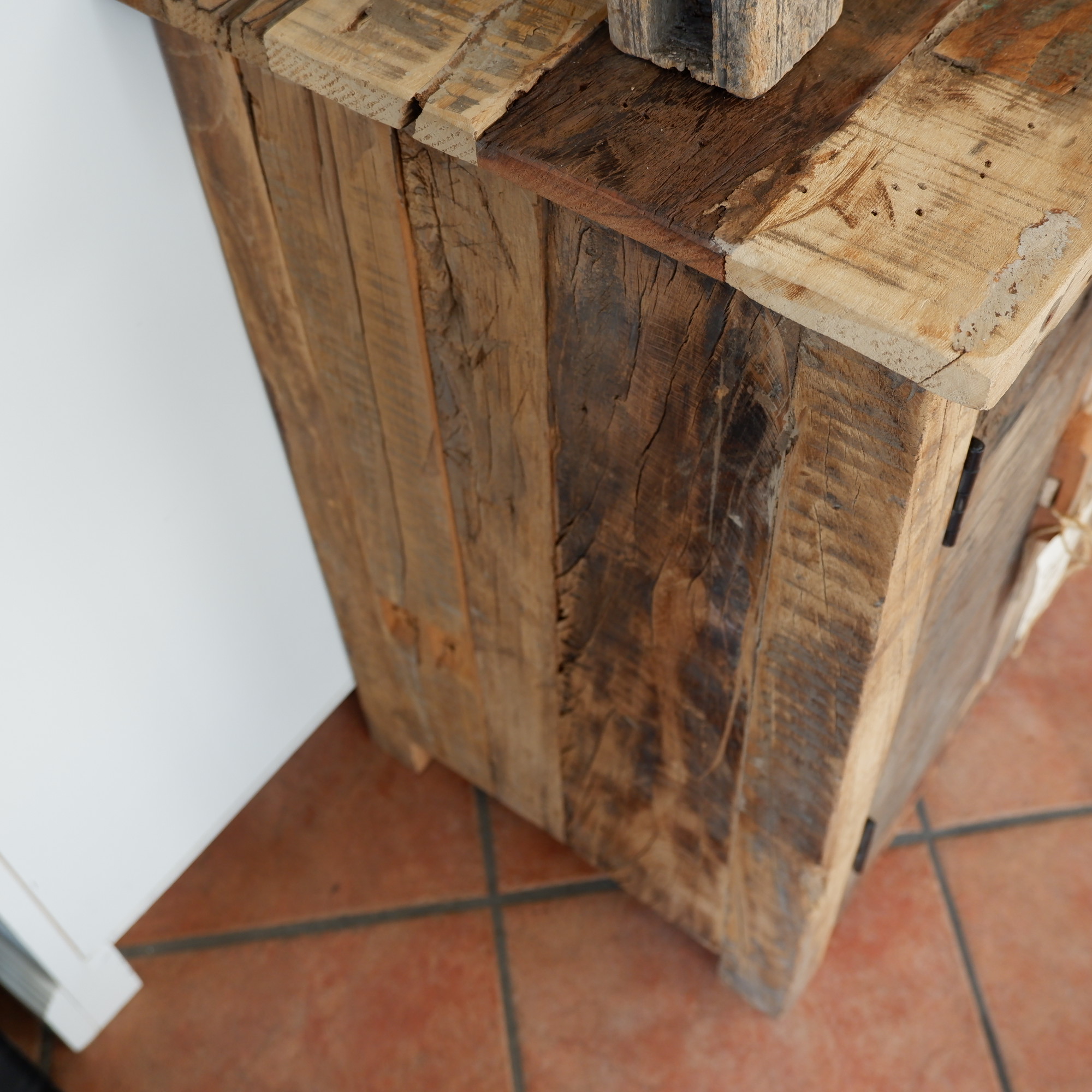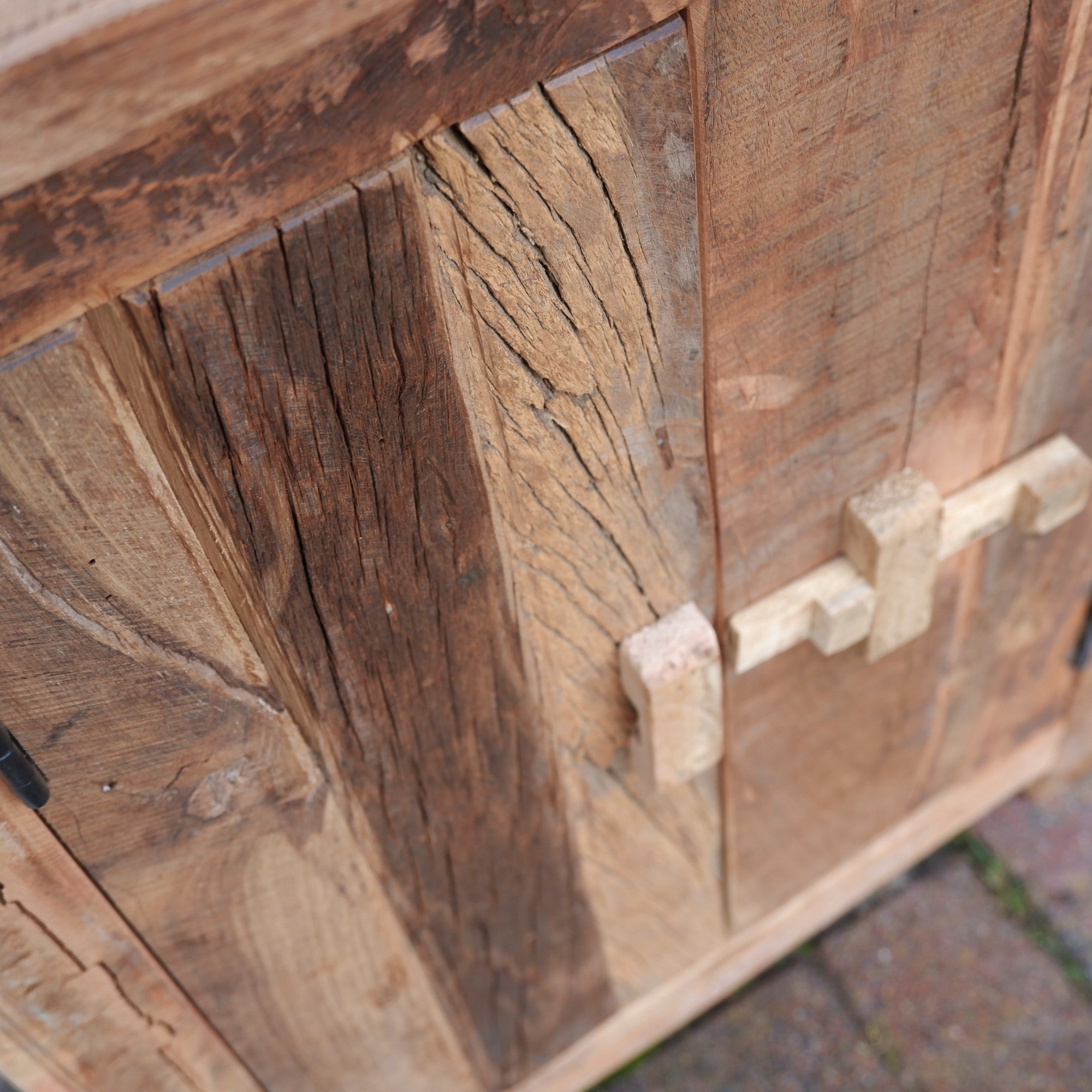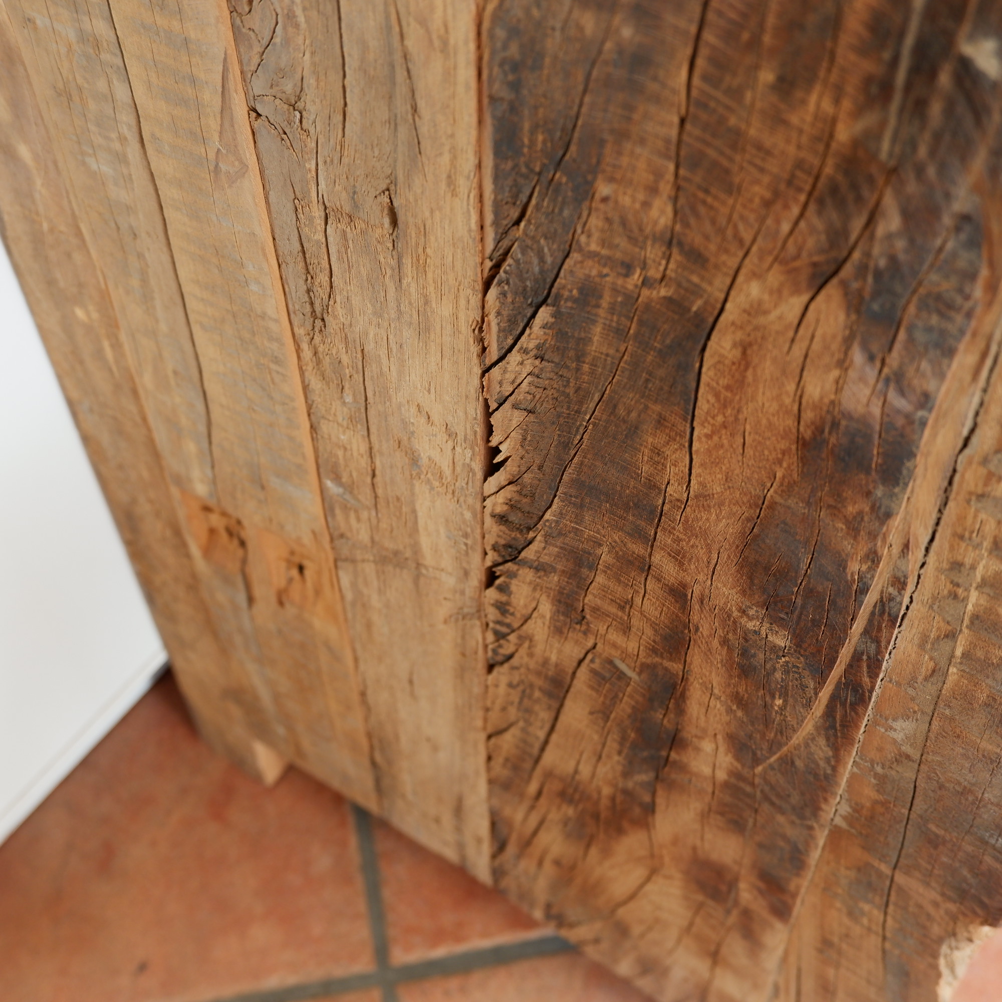 Het is oud hardhout met een doorleefd karakter en loodzwaar