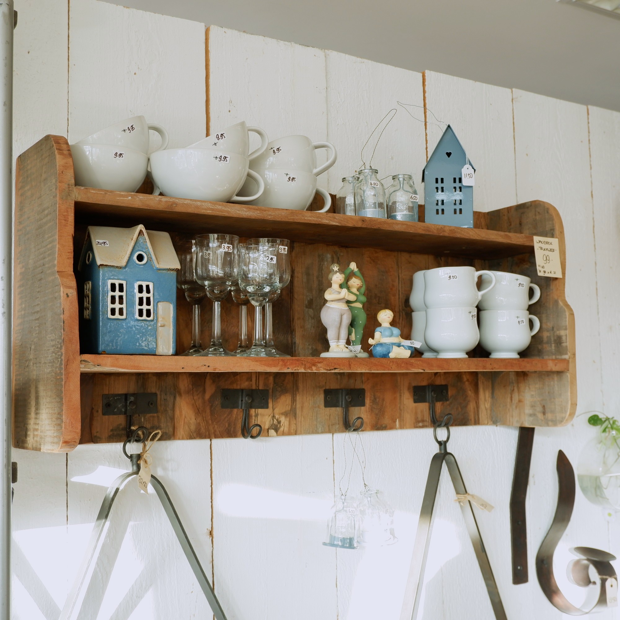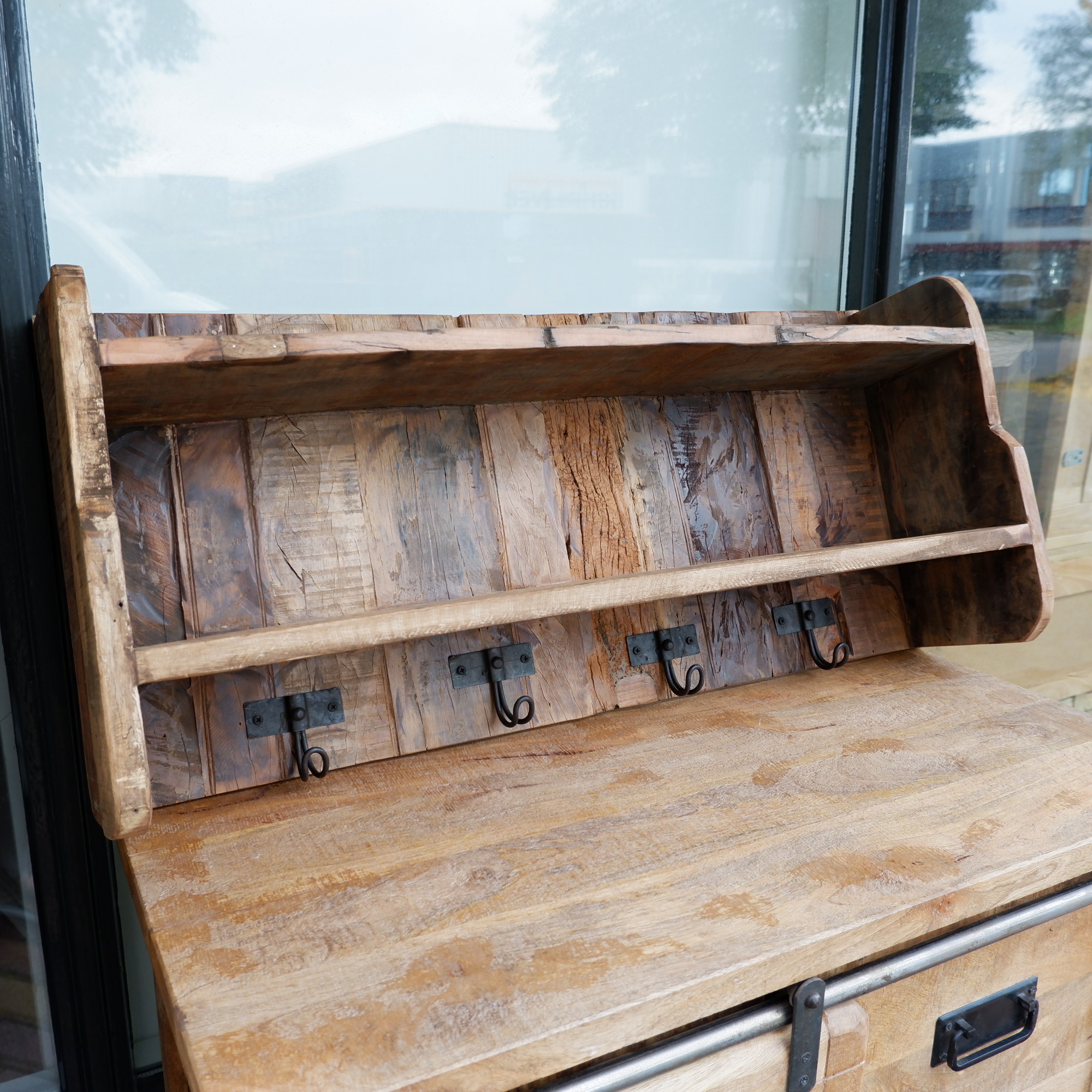 Het hout van de laadvloer is her-gebruikt voor het wandrek